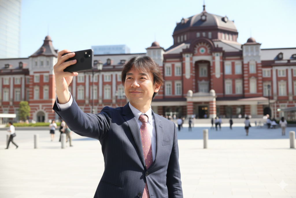 東京駅を背景にした画像を生成する