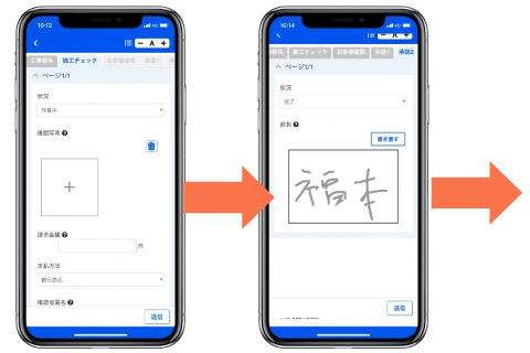 撮影した写真の貼付、その写真への手書きメモ、署名などの手書き入力もでき、スマートフォンならではの使い方が可能です。